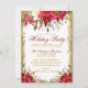 Holiday Party Red Gold Glitter Poinsettia Floral Invitation