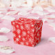 Party favor box is shown with a Holiday snowflakes print.
