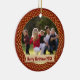 Holiday Photo Frame | Editable Text Red and Gold Ceramic Ornament