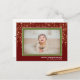 Bright Photo Merry Christmas card features golden glitter confetti in a green photo frame on the dark red background. Add your photo and enjoy it.