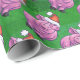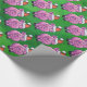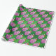 Holiday Pig in Santa Hat Pattern on Green Wrapping Paper