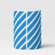 This pillar candle is shown with a festive holiday candy cane print in a blue color.