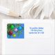 A pretty Christmas holiday address label with my artwork of green, red, blue, pink and gold Christmas tree ornaments hanging on tree branches on a blue background. Change the name and return address to your own.