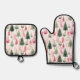 Holiday Pine Trees In Pink And Green Kitchen Oven Mitt & Pot Holder Set