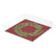 Festive holiday tray features pine cone, evergreen and berry wreath on cranberry and white star background