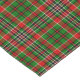 Table runner to accent your table decor is shown in a festive holiday plaid print.