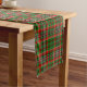 Table runner to accent your table decor is shown in a festive holiday plaid print.