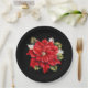 Holiday paper plate is shown with a festive Christmas poinsettia print.