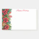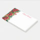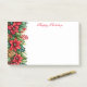 Post-it-Notes is shown in white with a festive holiday print of poinsettias and happy holidays text.