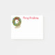 Post-it-Notes shown in white with a festive holiday wreath with a gold peacock print.