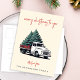 A festive Christmas postcard featuring the cheerful heading “Merry Christmas to you” in modern handwritten red script typography paired with a vintage-inspired Christmas tree delivery truck graphic. Designed on a vintage cream background, this stylish retro greeting card combines nostalgic charm with a modern minimalist layout. Personalize the “with love from” section and underneath with your family name in complementary typography for a warm, custom touch. Perfect for sharing love and holiday wishes, this non-photo fun and classic design adds personality to the season while spreading festive joy. A timeless Christmas design ideal for families, individuals and couples alike.