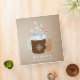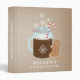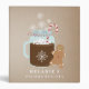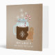 A recipe binder featuring a brown card stock inspired background. Front features an illustration of a gingerbread man standing next to a mason jar of hot chocolate garnished with a candy cane, marshmallows, and snowflakes. Personalize with your name on front and spine. The perfect gift for the home cook to store Thanksgiving, Christmas, and New Year's Recipes!