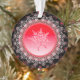 A single perfect ice crystal, set in gradient hues of red and pink; framed by a laced snowflake design...gives almost a snow globe like effect. The ice crystal is actually a template, allowing you to replace with a photo of your family or winter scene of your choice, should you prefer.