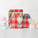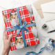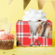 This is the perfect holiday gift wrap for the dog lover and lab dog mom, they are sure to wag with delight when you wrap their gift in this red holiday plaid with an expressive Rough Collie dog who wears a Santa hat.