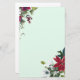 Bright red poinsettia images are paired with evergreen needles and white flowers to form a top and bottom corner decoration on this pretty Holiday season stationery paper. The background is tinted a very pale Christmas green. Perfect for that seasonal correspondence!