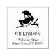A personalized self-inking stamp design featuring a robin above your name and return address text below. Ideal for adding an extra hand stamped touch to your holiday cards.