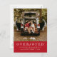 Send holiday joy and announce your big engagement news with this one-photo vertical card that features a customizable message on the back. "Overjoyed" - with an emphasis on joy - and all your save the date details are in white on a festive Christmas red background, but the color can be edited by clicking "Customize."