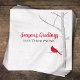 Simple red cardinal sitting on a white winter birch tree in the quiet solitude of winter. A beautiful and minimalistic design that depicts the simplicity of the winter months. A wonderful Holiday or Christmas design or any winter theme. With a dark red cardinal and gray and white birch tree. This holiday-winter design can be personalized for any occasion. Featuring Christmas holiday red cardinal winter, elegant watercolor birch tree, snow nature woodland branch twig, trendy stylish calligraphy script font, simple minimalist minimal typography, season's greetings saying the family name, Christmas holiday cocktail dinner napkin, Christmas holiday party paper napkin, Christmas holiday party supplies, modern calligraphy script font