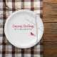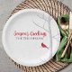 Simple red cardinal sitting on a white winter birch tree in the quiet solitude of winter. A beautiful and minimalistic design that depicts the simplicity of the winter months. A wonderful Holiday or Christmas design or any winter theme. With a dark red cardinal and gray and white birch tree. This holiday-winter design can be personalized for any occasion. Featuring Christmas holiday red cardinal winter, elegant watercolor birch tree, snow nature woodland branch twig, trendy stylish calligraphy script font, simple minimalist minimal typography, season's greetings saying the family name, Christmas holiday dinner dessert plate, Christmas holiday party paper plate, Christmas holiday party supplies, modern calligraphy script font