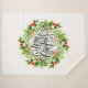 This warm and cozy Sherpa blanket is shown in a festive Christmas holiday holly wreath print design.