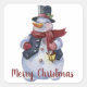 Smiling snowman with festive top hat, scarf, vest and mittens. Customizable Merry Christmas text.