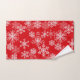This holiday hand towel is shown in a festive holiday Christmas snowflakes print.