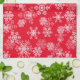 Kitchen towel shown in a Red color with a holiday Christmas snowflakes print.