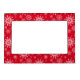 This magnetic picture frame is shown in a cute holiday Christmas red snowflakes print design.