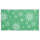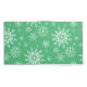 Pillowcase is shown in green with a festive holiday Christmas snowflakes print.