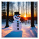 This print features a handsome snowman in the woods at sunset.