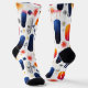 Celebrate the festive season in style with these modern holiday socks, showcasing elegant navy and gold feather-inspired patterns. Accented with vibrant red and orange hues, this design brings a sophisticated and artistic touch to your winter wardrobe. Perfect as a Christmas gift or for adding flair to seasonal outfits, these socks are both stylish and festive.