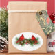 This oval shape sticker is shown with a holiday cardinals print.