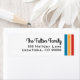 Red, blue, and gold stripes on this darling holiday return address label. Coordinates with our "Joyful Collection." Eye-catching font and cute details make this a special way to enhance your holiday mailings.