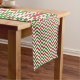 This holiday table runner is shown with a festive Christmas zig zag print.