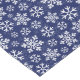 Holiday table runner is shown with a festive snowflakes print.