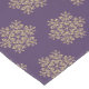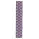 This table runner is shown with an Amethyst purple background color and has a festive holiday gold snowflakes print design.