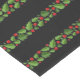 This table runner is shown in a festive holiday holly garland print. Color Black