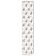 This Christmas holiday table runner is shown in white with a red and green plaid reindeer print design.