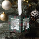 Customize this festive and elegant cube ornament with four square photos on a dark red and green holiday tartan plaid background.