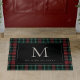 Add a festive touch to your entryway with this elegant tartan plaid patterned doormat in traditional Christmas red and green. Personalize with your single initial monogram in the center, and your family name beneath.