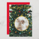 This design features a close view of a Christmas tree dressed in lights with an ornament filled in with a baby picture. On the back, there is room for another photo and a holiday greeting.