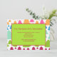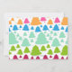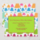 A delightful invitation featuring rows of trees, in cheerful colors, overlaid with a framed green panel. Suitable for any holiday party. The card is easy to customize with your wording, font, font color and choice of six paper types.