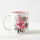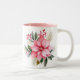 Holiday coffee mug is shown with a festive poinsettia print.