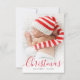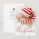 Red typography holiday and christmas personalized photo new born baby birth announcement card. The text and colors can be edited.