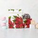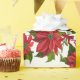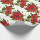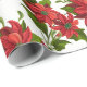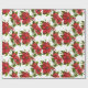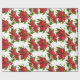 This holiday wrapping paper is shown with a white background and festive red poinsettias print.
