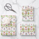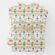 This holiday wrapping paper sheets set is shown in a cute festive Christmas print design of Santa, Snowman and Elves.