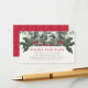 This cute christmas holiday baby shower books for baby/please bring a book/book request card features a cream background with greenery with red berries in watercolor. The reverse side features a red background with white snow patterns. Personalize it for your needs. You can find matching products at my store.
