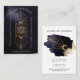 The design features our own hand-drawn holistic sun and moon crest design/logo in faux gold glitter. The design/logo is created with intricate and decorative details. Customize with your business name and monogram that is placed inside the sun design. The reverse side features the name and contact info displayed in a clean and modern layout. Deep navy and gold accent along with our moon design. The logo is hand-drawn original artwork by Moodthology.