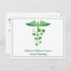This holistic medicine doctor postcard for a wellness center grand opening features a beautiful green medical caduceus wrapped in botanical leaves to combine nature and wellness into a modern logo for a naturopath. A naturopathic healer or apothecary will love the natural look of this design. These are also a lovely choice for a homeopathic practitioner.
