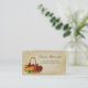 Offer your services as a certified holistic nutrition consultant for women when you give clients this girly health and wellness business card with a vintage vignette of a fruit basket fill with red and yellow berries. Personalize by adding the name of the nutrition counselor or dietician and her professional credentials. Add your QR code to the back, or you can remove the template images if you prefer. You can get your own unique quick response code by using an online code generator.